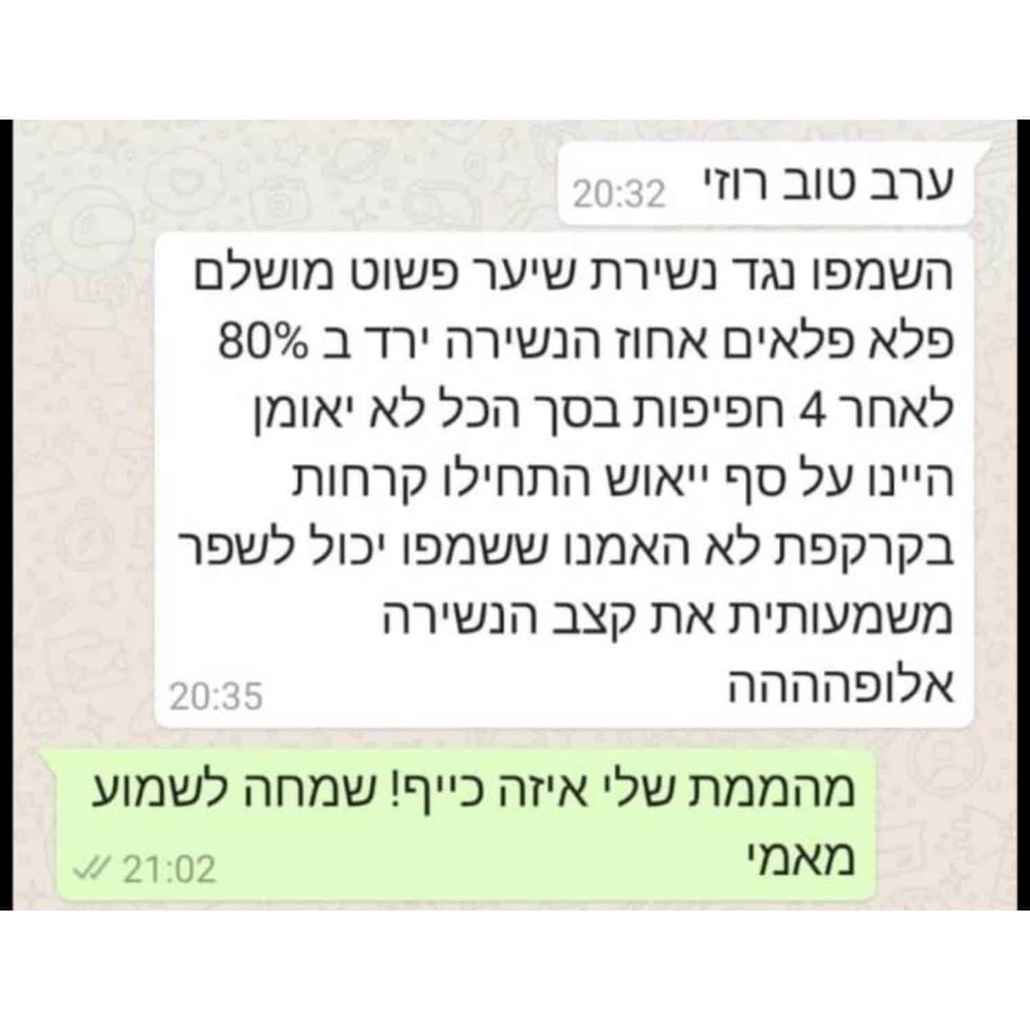רכשתי את הערכה לעצירה ומניעת הנשירה לאחר נשירה שנראתה בכל פינה בבית. באופן מופלא ראיתי שיפור כבר תוך 3 שבועות והיום הנשירה ממש פחתה ועבר רק חודש וחצי. ניסיתי כדורי ויטמינים של חברות ידועות ולא הבחנתי בשום שיפור. ממליצה על הערכה הזאת לכל אחת שסובלת מנשירה.